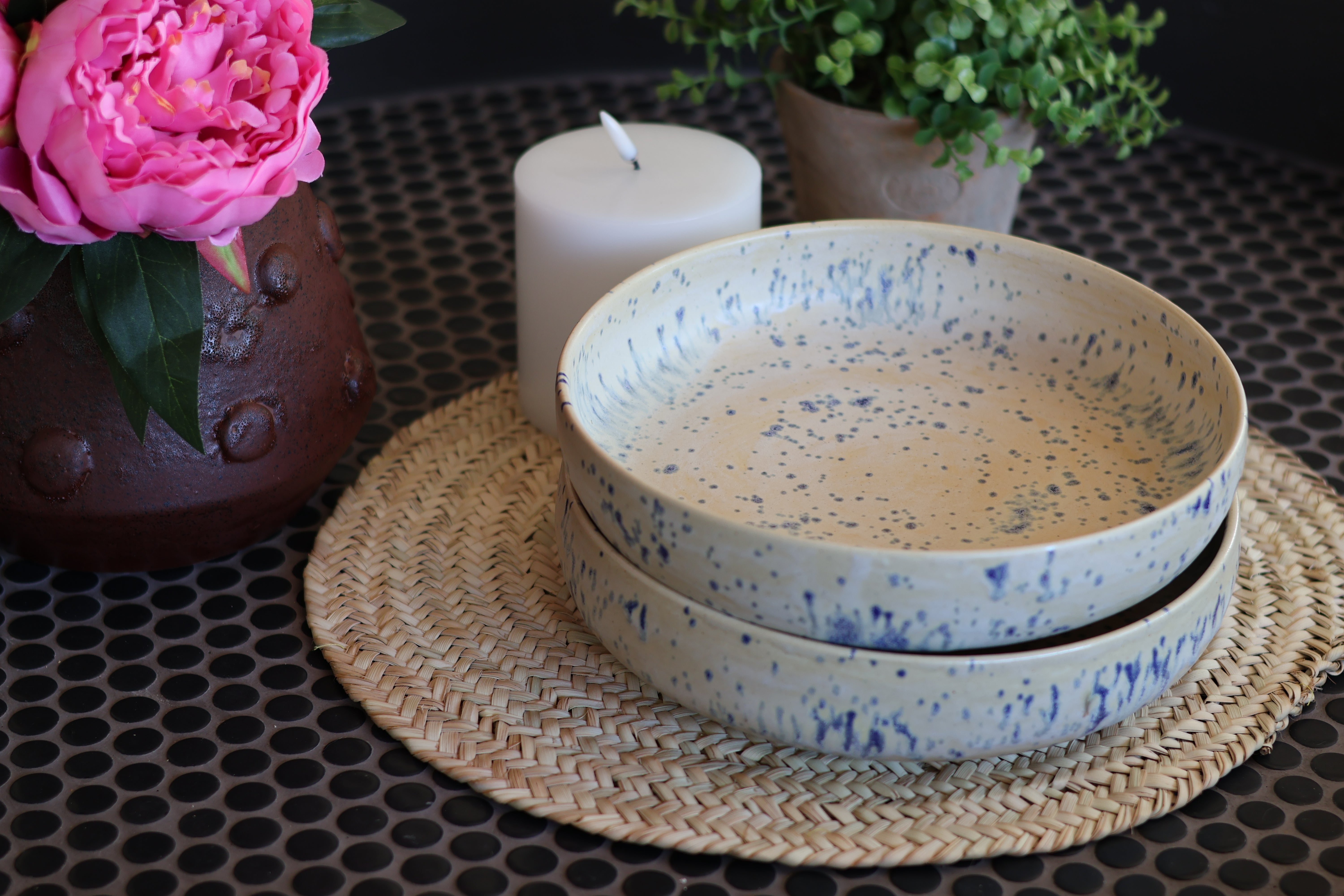 Pensé pour vos salades gourmandes comme pour vos plats en sauce, le saladier L allie praticité et élégance. Avec son format idéal (24 cm de diamètre, 6 cm de hauteur), il offre une capacité parfaite pour recevoir et partager. Façonné à la main dans nos ateliers de Pau, chaque pièce en céramique est unique et apporte une touche d’authenticité à votre table.