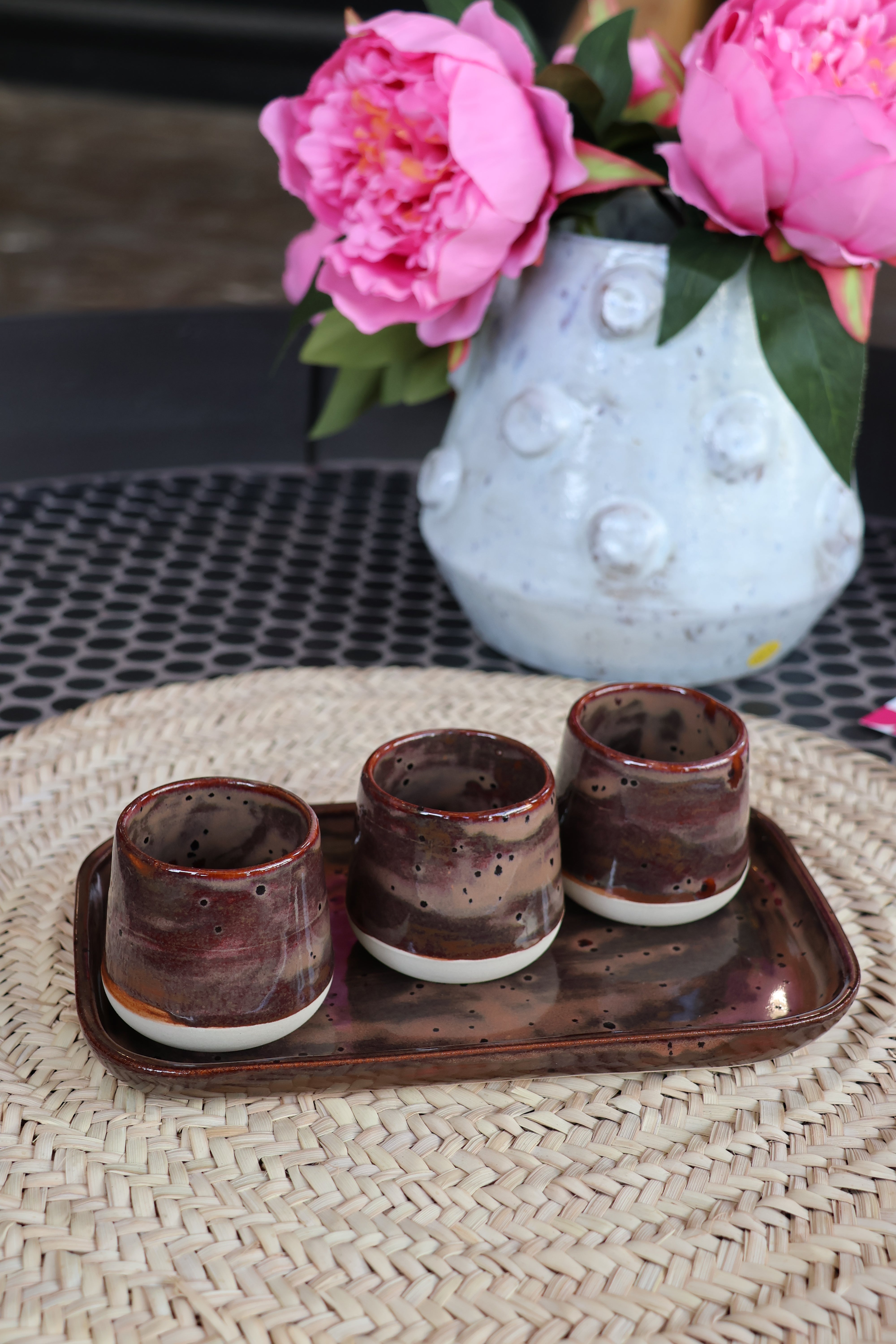 Trio de tasses à café + plateau – Création Jolila