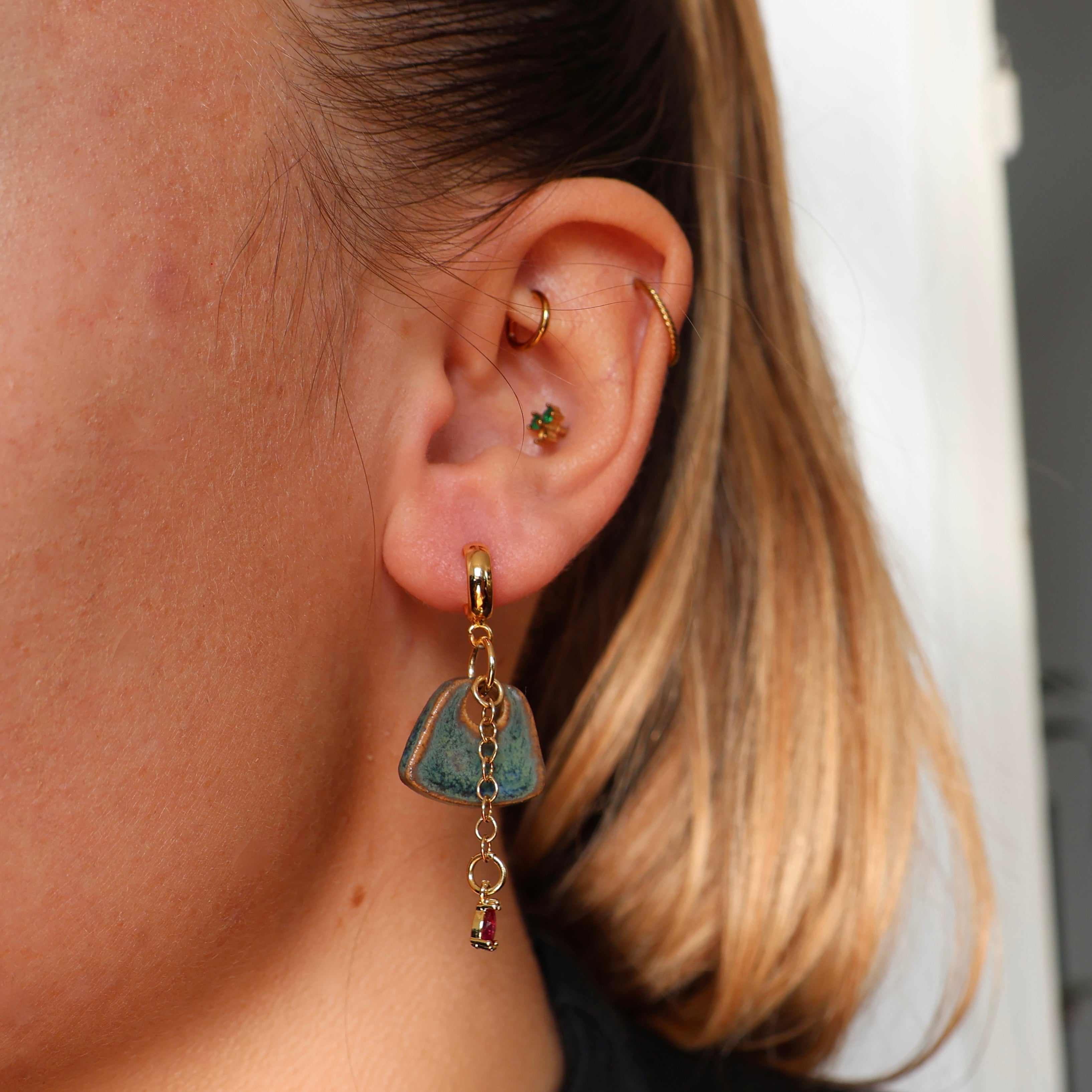 Chaque boucle est une pièce unique, façonnée à la main en céramique, révélant des textures et nuances singulières.