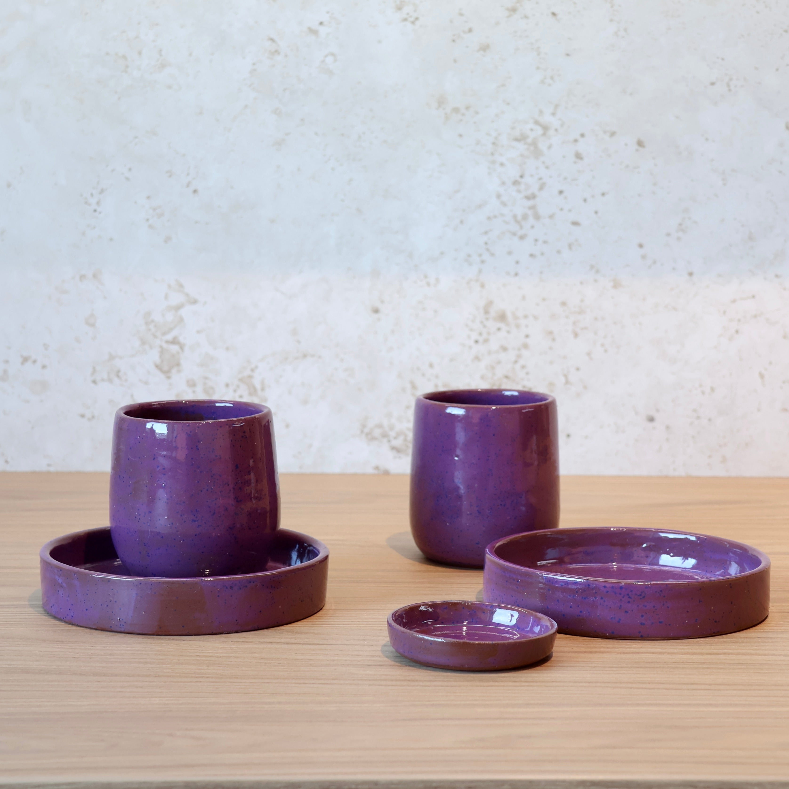 Ce service réunit deux petites assiettes, deux mugs façonnés à la main et une mini coupelle assortie, sublimés dans nos ateliers de Pau. Pensé pour accompagner les rituels du matin comme les gourmandises du quotidien, il offre une harmonie douce et chaleureuse autour d’un émail aux nuances subtiles.