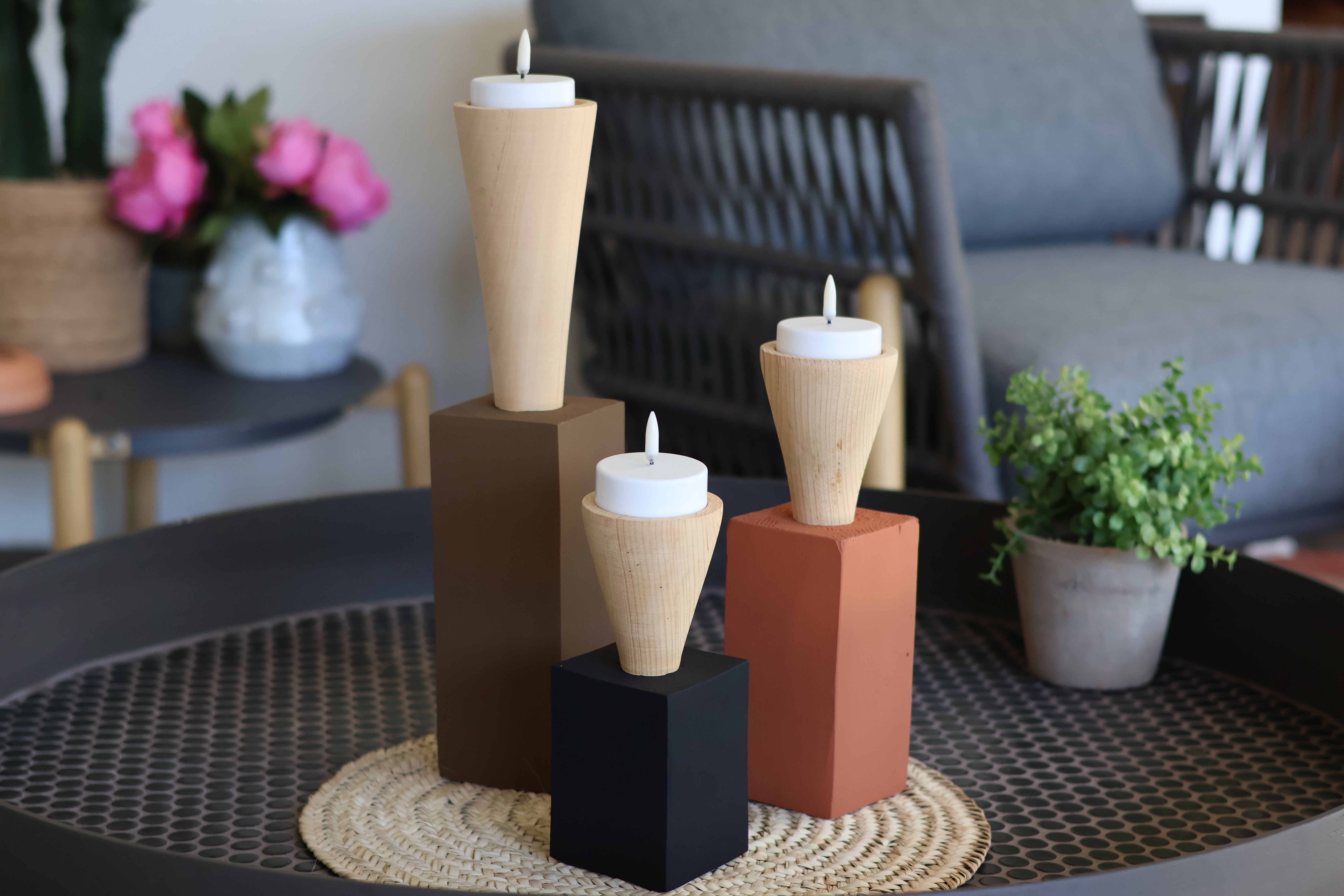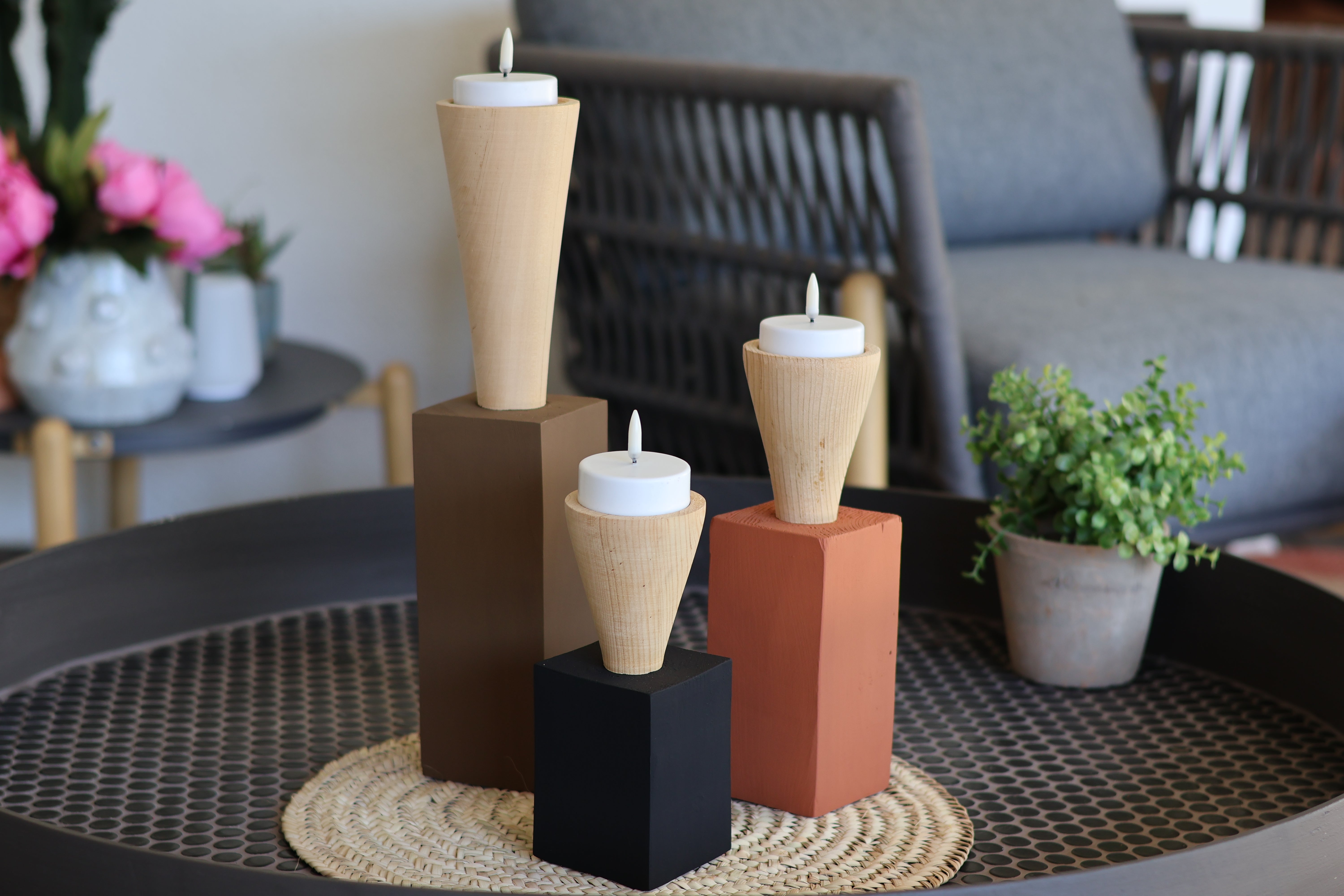 Ces bougeoirs en bois sont parfaits pour créer une ambiance douce et conviviale, que ce soit sur une table, une étagère ou en centre de décoration.