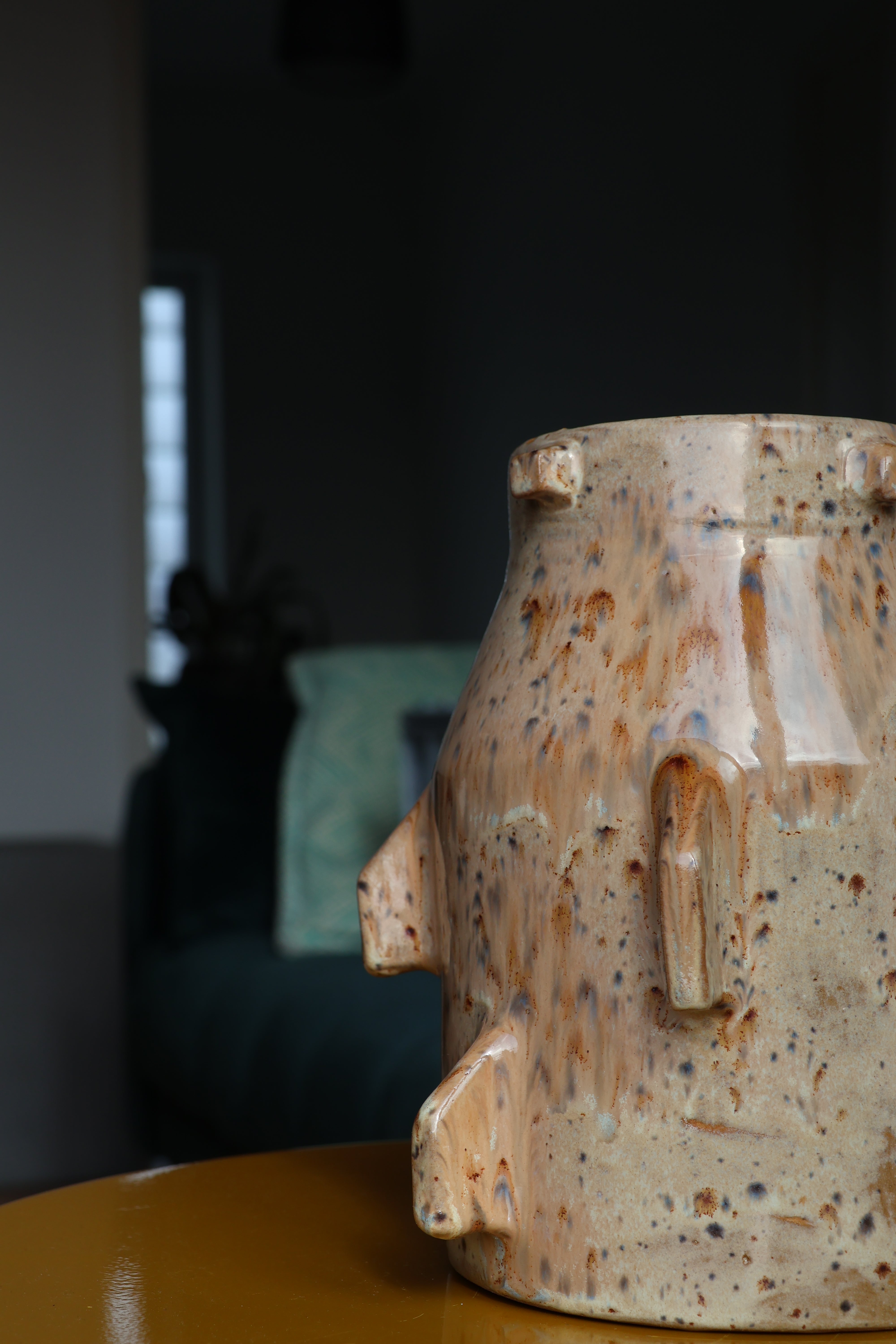 Pensé comme un objet à part entière, il accueille aussi bien quelques tiges délicates qu’un bouquet plus généreux, ou se suffit à lui-même comme élément sculptural. Son caractère artisanal, à la fois sobre et affirmé, en fait une pièce qui s’intègre aussi bien dans les intérieurs modernes que dans les ambiances plus chaleureuses.