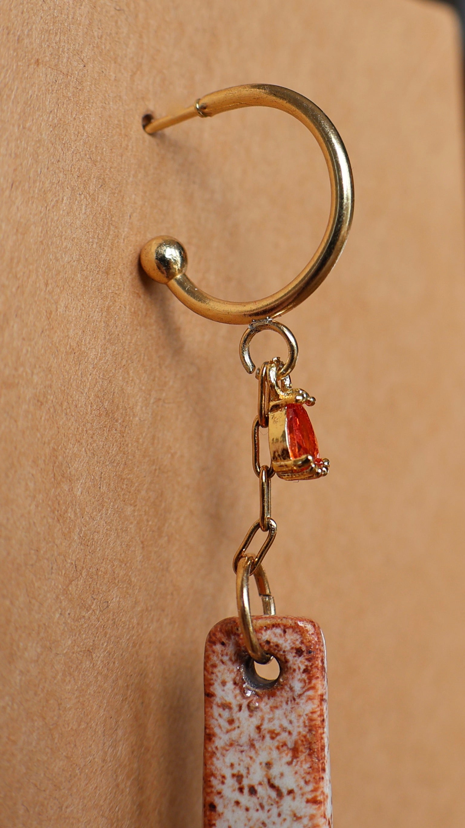 Chaque boucle est une pièce unique, façonnée à la main en céramique, révélant des textures et nuances singulières.