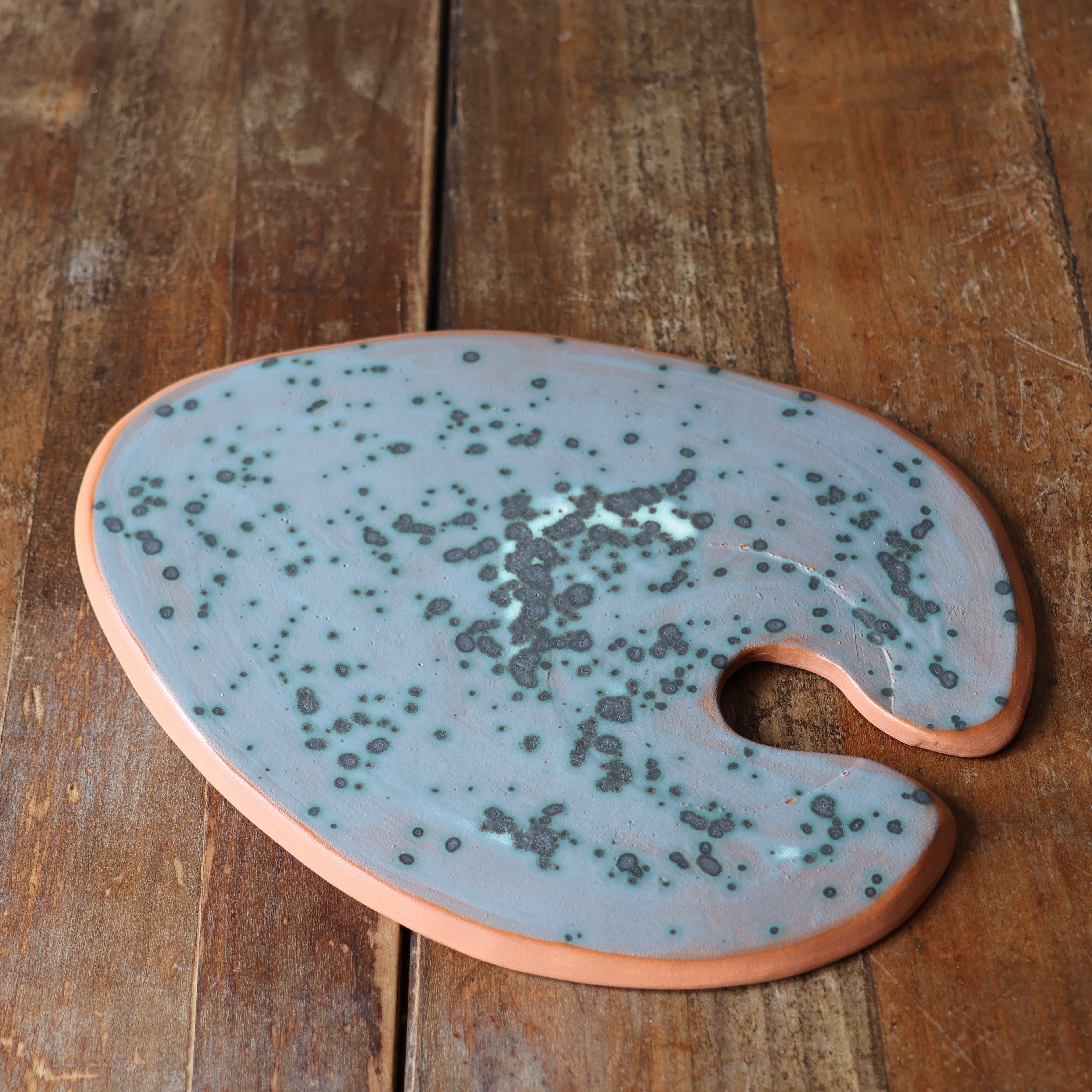 Assiette “Picasso” façonnée à la main dans mon atelier à Pau, inspirée de la palette du peintre. Son design organique, pensé pour être à la fois pratique et artistique, intègre selon les modèles un emplacement dédié pour un verre à pied ou un verre à whisky.